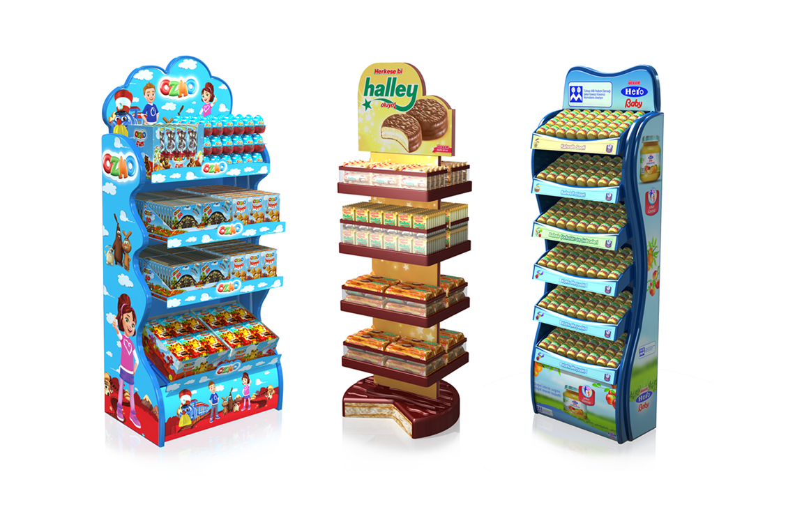 Ayaklı standlar raflı yapıları sayesinde ürün çeşitlerinizi rahatlıkla sınıflandırıp sergileyebileceğiniz standlardır. Yan duvarlar, alınlık, raf önleri ve baza alanları görsel iletişim için kullanabileceğiniz geniş alanlardır. İhtiyacınız doğrultusunda hazırlanan tasarımlar sayesinde ağır yük taşıma kapasitesine sahiplerdir.. Özel tasarım plastik ayaklı standlar ihtiyacınıza ve isteklerinize yönelik en dikkat çekici ve faydalı yer standı türüdür.