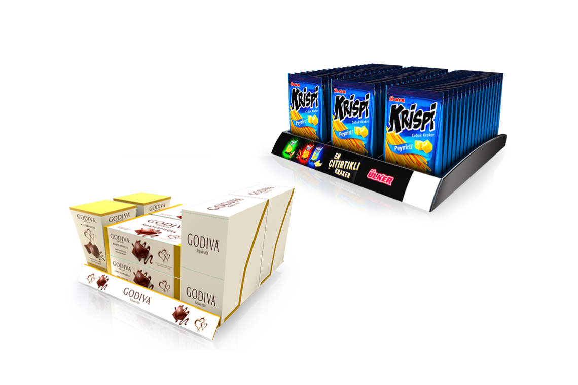Raf tepsileri, raflarda, müşterileriniz tarafından, önce sizin ürünlerinizin fark edilmesini sağlar. Çikolataları, şekerleri, sakızları, sabunları, şampuanları, ojeleri ve daha bir çok ürünü raflarda rakiplerinden ayırarak daha çarpıcı görünmesini sağlayan raf önü tepsileri, pratik ve ekonomiktir.