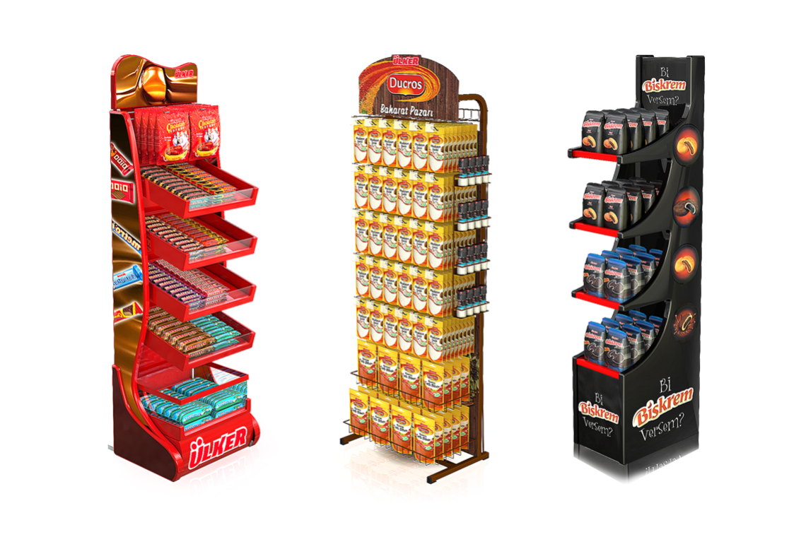 Ayaklı standlar raflı yapıları sayesinde ürün çeşitlerinizi rahatlıkla sınıflandırıp sergileyebileceğiniz standlardır. Yan duvarlar, alınlık, raf önleri ve baza alanları görsel iletişim için kullanabileceğiniz geniş alanlardır. İhtiyacınız doğrultusunda hazırlanan tasarımlar sayesinde ağır yük taşıma kapasitesine sahiplerdir.. Özel tasarım plastik ayaklı standlar ihtiyacınıza ve isteklerinize yönelik en dikkat çekici ve faydalı yer standı türüdür.