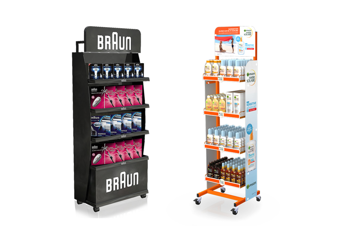 Ayaklı standlar raflı yapıları sayesinde ürün çeşitlerinizi rahatlıkla sınıflandırıp sergileyebileceğiniz standlardır. Yan duvarlar, alınlık, raf önleri ve baza alanları görsel iletişim için kullanabileceğiniz geniş alanlardır. İhtiyacınız doğrultusunda hazırlanan tasarımlar sayesinde ağır yük taşıma kapasitesine sahiplerdir. Özel tasarım plastik ayaklı standlar ihtiyacınıza ve isteklerinize yönelik en dikkat çekici ve faydalı yer standı türüdür.