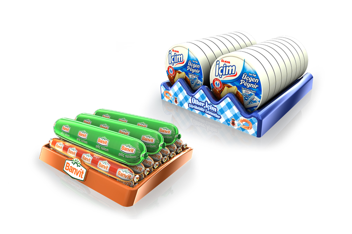 Raf tepsileri, raflarda, müşterileriniz tarafından, önce sizin ürünlerinizin fark edilmesini sağlar. Çikolataları, şekerleri, sakızları, sabunları, şampuanları, ojeleri ve daha bir çok ürünü raflarda rakiplerinden ayırarak daha çarpıcı görünmesini sağlayan raf önü tepsileri, pratik ve ekonomiktir.